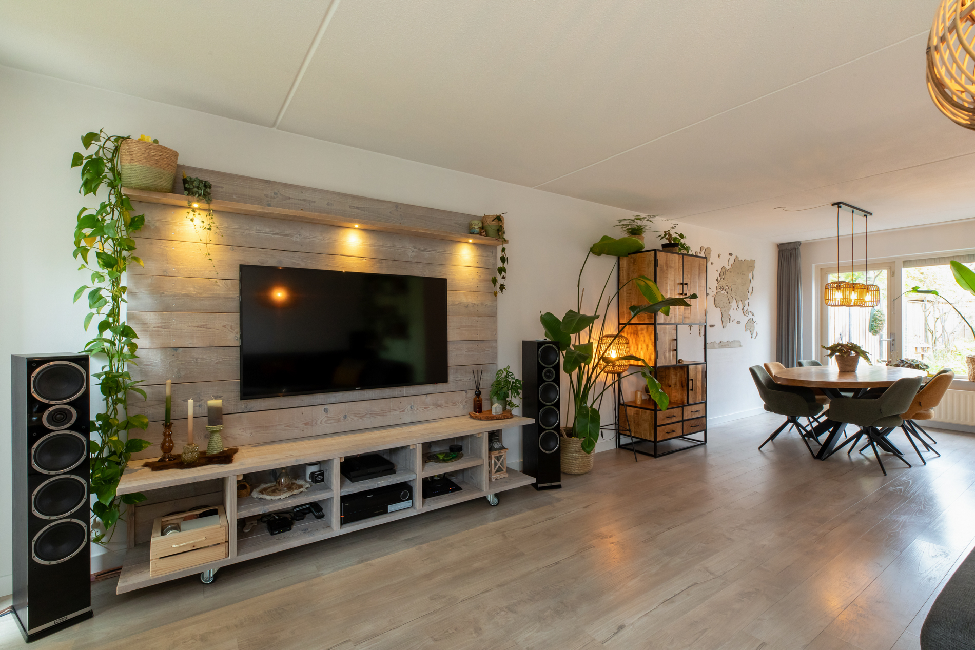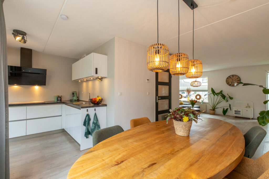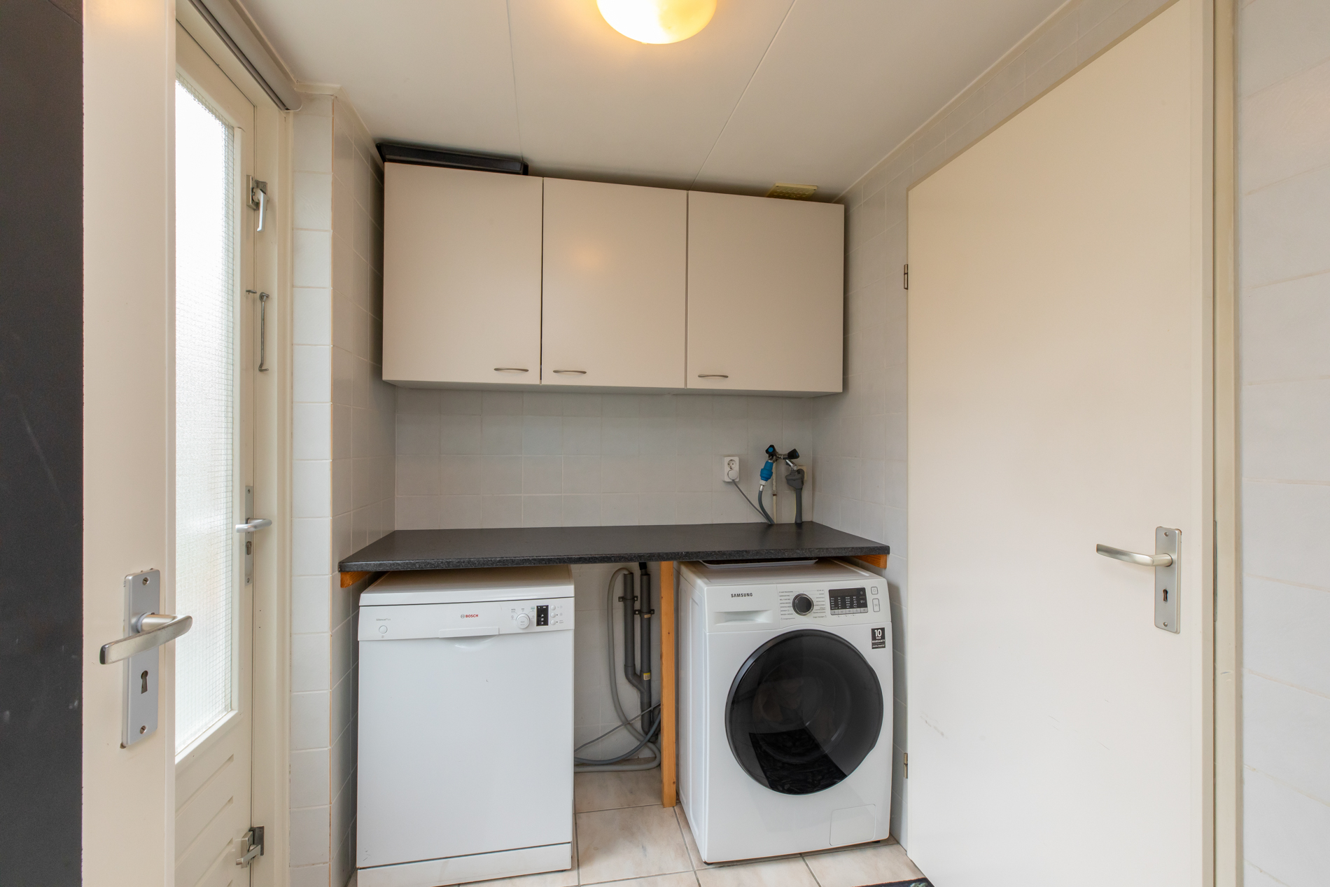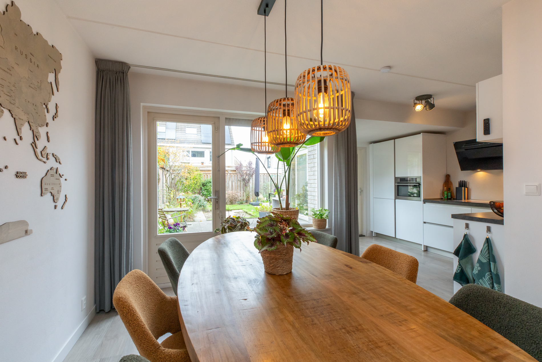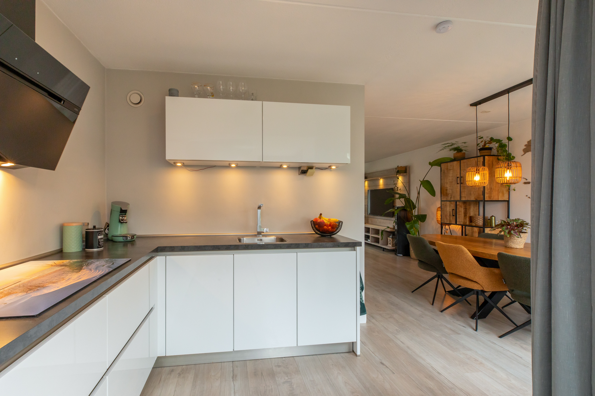 De lichte woonkamer is verdeeld in een living aan de voorzijde en een eetkamer aan de achterzijde. Gezamenlijk meet deze ruimte zo een 35m². Diverse raampartijen zorgen voor daglicht maar ook voor een speelse (gevel)indeling. In 2018 is er een nieuwe keuken geplaatst. Deze is voorzien van een combi oven, inductie kookplaat, close-in boiler, koel-vriescombinatie en afzuigkap. Aansluitend aan de keuken is er een handige en praktische bijkeuken, naast de route naar garage en tuin is er in deze ruimte ook plaats voor de wasmachine. De entree met toilet en trapopgang naar de eerste verdieping maken de begane grond compleet.