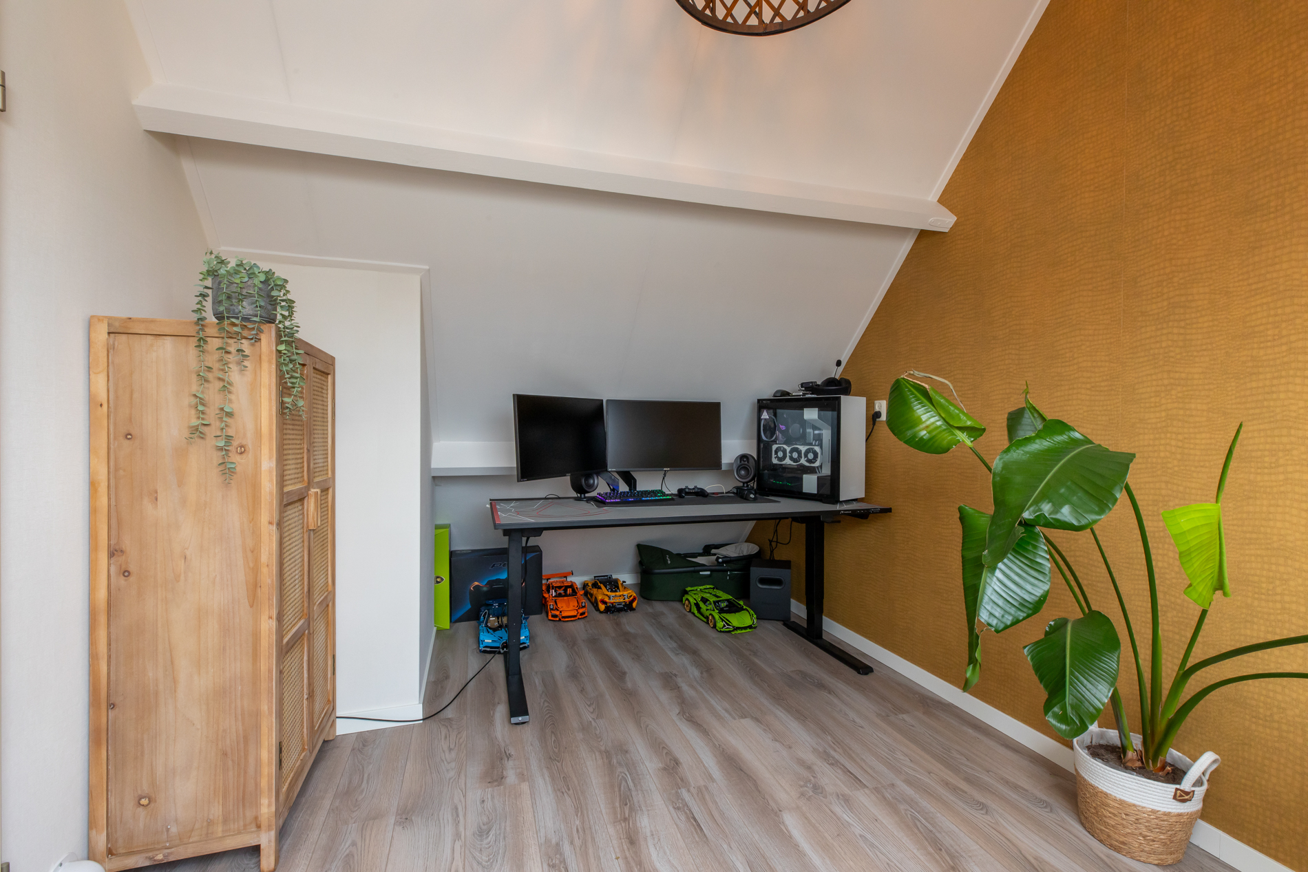 Opvallend is de ruimte in de garage, met zo een 20m² aan woonoppervlakte is deze ruimer dan de meeste standaard garages. Dit is een heerlijke opslag of hobbyruimte. De elektrische garagedeur zorgt voor een praktische ontsluiting. Zowel voor- als achtertuin zijn verzorgd aangelegd. De achtertuin is voorzien van gras, borders, terras en een nette schutting als afscheiding. Parkeren kan op de eigen oprit aan de voorzijde.